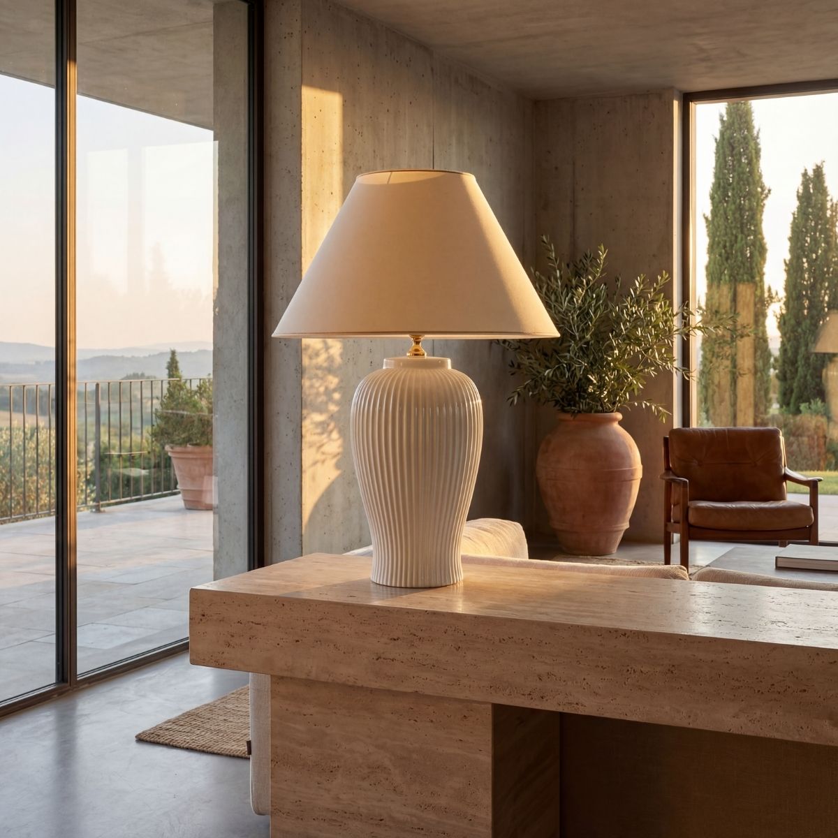 Edle Keramik Tischleuchte “Nobile Bianco”